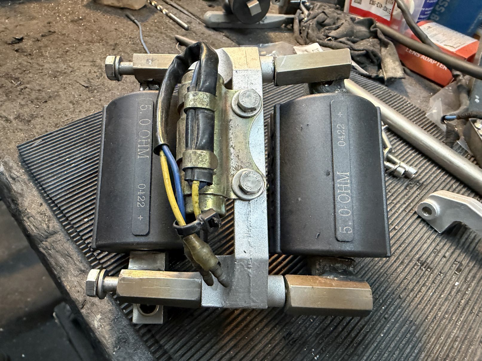 28.02.2026 - Zeit wird's, wieder an der Honda zu arbeiten - wir haben abgewartet, bis die Temperaturen wieder ertäglich sind. Bei Dieter werden die Zündspulen mitsamt Halterung aus dem Mopped ausgebaut, dann dackeln wir in meinen Bastel- keller. Zuerst wird der Gabelholm zusammengebaut, mit neuem Simmerring und neuem Dämpfer-"Kolbenring". Die Zündspulen machen viel, viel mehr Arbeit: Die neuen Spulen haben zwar fast die gleichen Abmessungen, aber die Befesti- gungsbohrungen passen nicht, also müssen wir praktisch ähnliche Halterungen anfertigen wie an meiner CB. Die alte Halterung der Spulen taugt nur zum Maß- nehmen, wir nehmen 5mm VA Blech und VA Sechskantstäbe, dann wird gemessen, gesägt, gebohrt, geschweißt, geflext und Gewinde geschnitten, bis die Spulen an die Rahmenbefestigung passen sollten, nach über 5 Stunden (!) sind wir endlich fertig, nicht, ohne am Ende kurz zu zweifeln, ob wir nicht doch noch einen Fehler gemacht haben - das stimmt zum Glück nicht, aber es ist ein deutliches Signal, das wir zu viel Zeit im Bastelkeller verbracht haben und die Zelte abbrechen müssen. Aber wir habens's geschafft, nun müssen der Gabelholm und die neuen Spulen "nur noch" angebaut werden, mal sehen, wann wir Zeit haben und das Wetter passt.